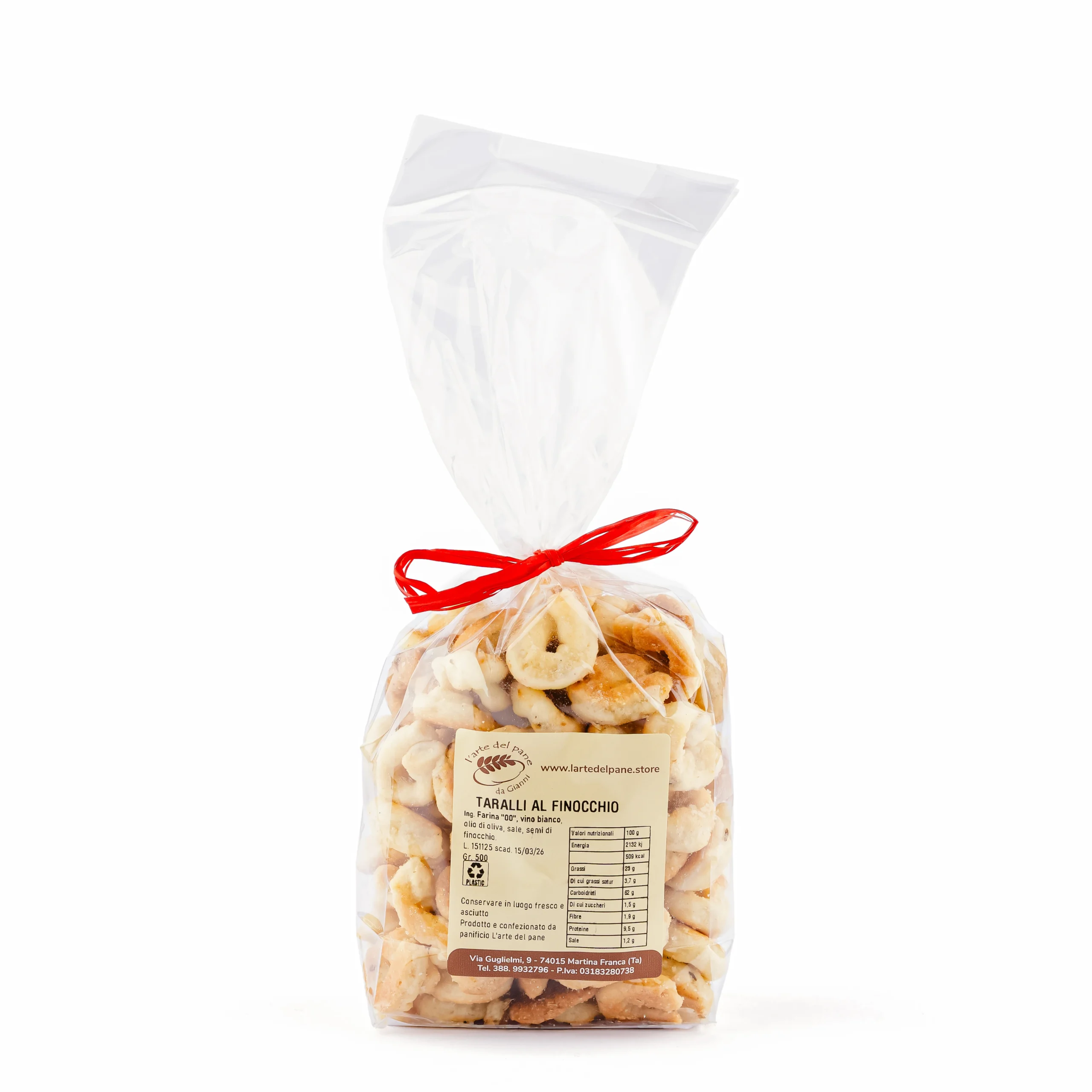 Farina “00”, vino bianco, olio di oliva, sale, semi di finocchio